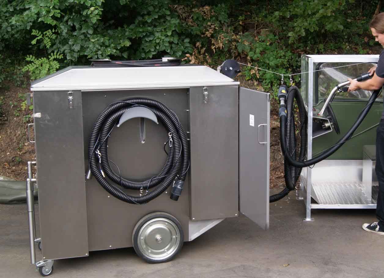 放射性物质表面洗消 SURF-Ex是一款全新的洗消装置,用于核生化洗消,危险品和爆炸物污染的表面洗消,也能用于真空清除污染颗粒、被污染的吸附性材料,土壤等。SURF-Ex同样是一款喷雾式抽取装置,通过在物体表面喷射洗消剂如GD-6萃取后,直接和污染物一起被真空吸尘器移除。喷射—抽取方法是清除放射粒子的有效方法,这对敏感表面如设备内部,飞机和轮船等尤为重要。采用不同的洗消剂可实现不同的洗消目的。 SURF-Ex 具有防爆外壳,符合ATEX-条例 (Zone 1 and 21) 能使用高度易燃液体和洗消剂进行洗消作业,它能在爆炸危险区如飞机库,汽油或煤油站,化学物品贮存仓库等区域使用,甚至是化学试剂储罐或大的试剂袋泄漏时也能用SURF-Ex大的吸入口进行清洁。液体能通过隔膜泵直接吸入收集桶。对建筑物内部或街道等进行大面积洗消时,可通过连接延长管和不同结构的洗消终端来实现。洗消范围宽达 技术参数 Mode 1:表面洗消(固体) 粉尘防爆领域Dust-Ex-Zone Zone 21 符合 ATEX对真空清除易燃物和有毒粉尘的要求,包含过滤器清洁和无污染交换存放容器; 固体物质存放容器体积:35L,集成隔膜泵,选配 多重过滤单元Multi-step filter unit; Step 1:气旋和灰尘过滤器M级 Step 2:HEPA 过滤器 等级 H14 铭牌:CE 0158 Ex II Mode 2:表面洗消 (液体喷洒-收集) 气体防爆领域Gas-Ex-Zone Zone 1 符合 ATEX对真空清洁和喷洒-抽取易燃液体的要求 喷洒洗消剂和溶剂可选。 空气蓄压器(选配)供1小时操作:直接与压缩空气连接 可选 液体存放容器体积 Step 1:旋风式 Step 2:活性炭 铭牌:CE 0158 Ex II