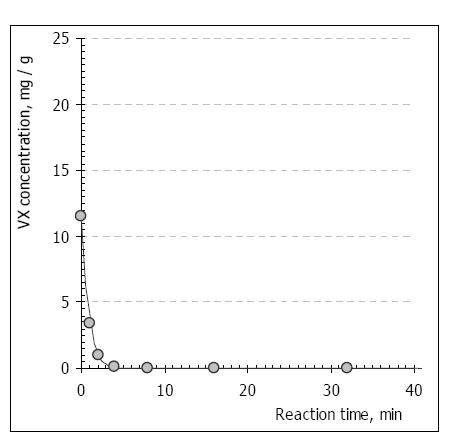 化学数据: ■应用比例 1:1 to 3:1 (g GD-6 : g CWA) ■极高的反应速率( ■梭曼分解 < 1 min. ■VX分解 < 3 min. ■S-Lost分解 < 10 min. |