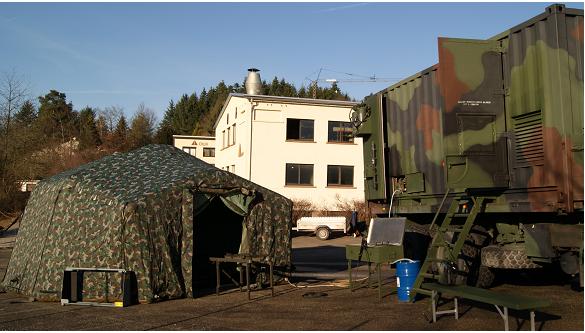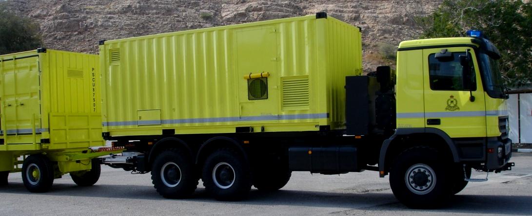 MPD-100i包含的内容: 1.ISO国际标准化组织认证的尺寸、重量和材料,整个系统能够在现场使用,也能用组装起来用卡车运送。 2.DEDAS X65洗消方法:DEDAS是MPD-100i中很重要的一个洗消方法,凡是不能用GD-6洗消的或者碱性的毒剂都能用DEDAS来洗消,DEDAS有乳胶和泡沫两种形式。 3.DECOFOG单兵生化洗消器。 4.TRS-10洗消器:可以使常压状态,也可以高压喷射,能使用多种形式的洗消剂。 5.充气式洗消帐篷:现场撑开,对人员进行洗消。 6.发电机组:为系统提供动力来源。 7.高压洗消系统:全密封,利用高温、高压水蒸气进行消毒,主要针对微生物。 8.高温洗消:利用喷射装置将热水喷洒出去,利用高温杀灭微生物。 9.储水槽,储水袋:为洗消提供水资源。 10.气体压缩机:为泡沫洗消提供发泡手段。 11.其他辅助和支撑设备。